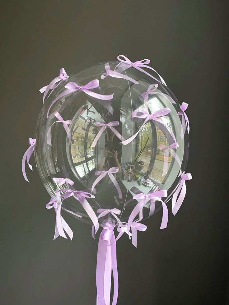 Цей чарівний прозорий шар ніби створений зі світла і мрій. Його легкість підкреслюють ніжні атласні стрічки лавандового кольору, які зав’язані у витончені бантики, що ніби танцюють у повітрі. Він випромінює елегантність та ніжність, додаючи святковій атмосфері нотку витонченого шарму. Такий кулю стане ідеальним подарунком для романтичних натур або ж прикрасою будь-якої події, наповнюючи простір легкістю та красою.
