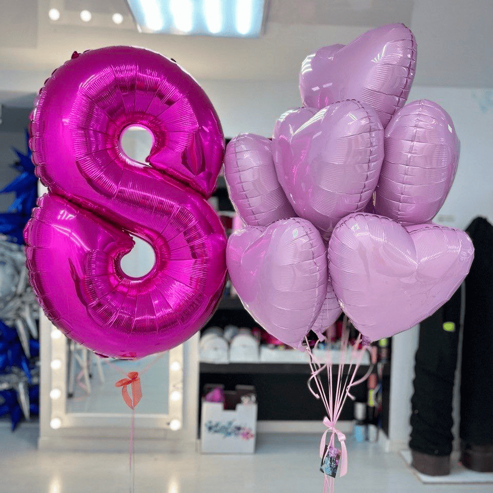 Ця яскрава композиція з малинової вісімки та ніжно-рожевих сердець є символом весняної енергії та кохання. Вона додає урочистості і особливого сяйва, перетворюючи будь-яке свято на незабутню подію. Ідеальне поєднання для тих, хто цінує стиль і романтику в кожній деталі.
