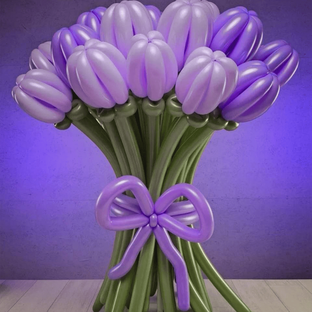Цей вишуканий букет з повітряних кульок у відтінках аметисту створює атмосферу загадковості та величі. Ніжні бутони, перев’язані витонченим бантиком, втілюють гармонію та ніжність. Ідеальний подарунок для тих, хто цінує елегантність і магію моменту.