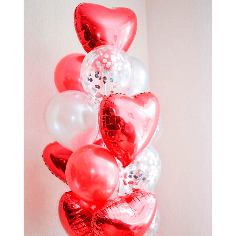 Ця чарівна композиція з кульок, як справжня симфонія любові та радості. Серця в насиченому червоному кольорі переплітаються з прозорими кульками, крізь які ніжно мерехтять сріблясті відтінки. Вони ніби дихають святом та відчуттям легкості, оживляючи простір навколо. Цей ансамбль символізує чисті емоції і наповнює серце теплом, створюючи атмосферу щастя і кохання.