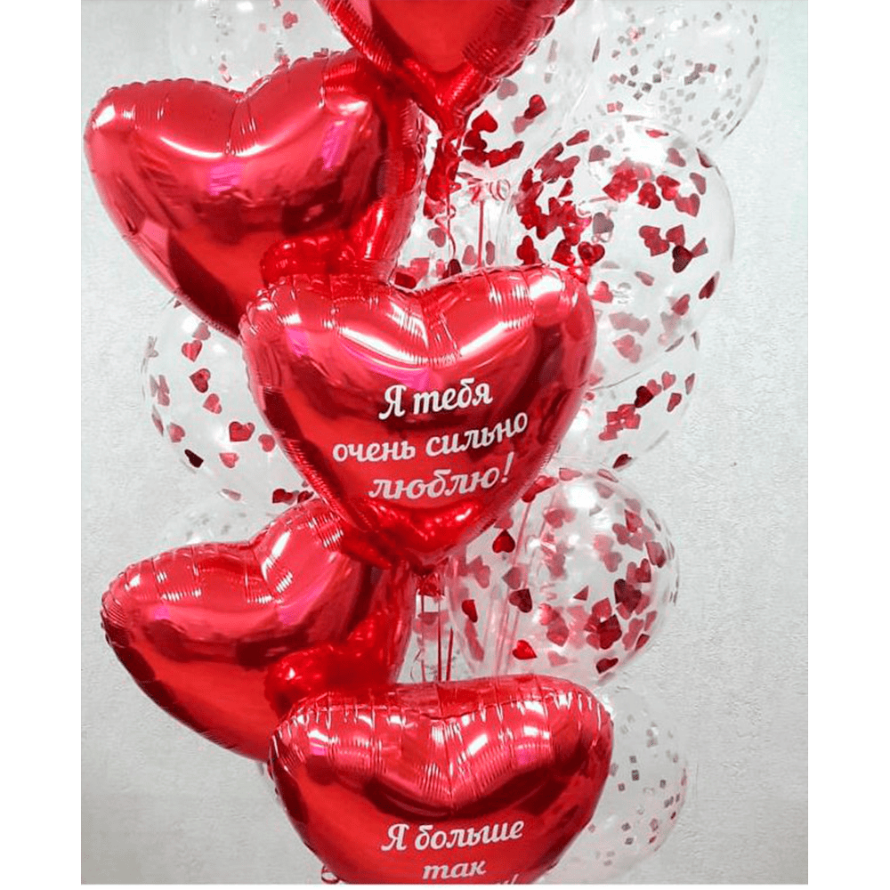 У повітрі розквітає ніжність, ніби серце, що летить назустріч коханню. Яскраво-червоні кульки у формі сердець віддзеркалюють тепло, яке огортає кожного, хто бачить перед собою цю щиру символіку. Вони немов шепочуть про безмежну любов, готові торкнутися душі та подарувати мить радості. Завмерлий у часі обіймів, цей букет кульок перетворює звичайний день на казкове свято, де панує лише любов.