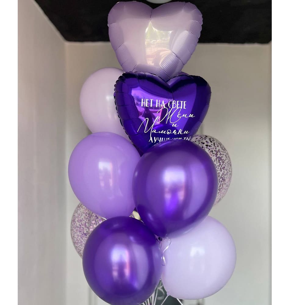 Пориньте у світ ніжності та вишуканості з фіолетовою гамою і сріблястими акцентами. Серця та блискучі кульки створюють особливий шарм і затишок, ідеальний для святкування родинних подій, сповнених любові та тепла.