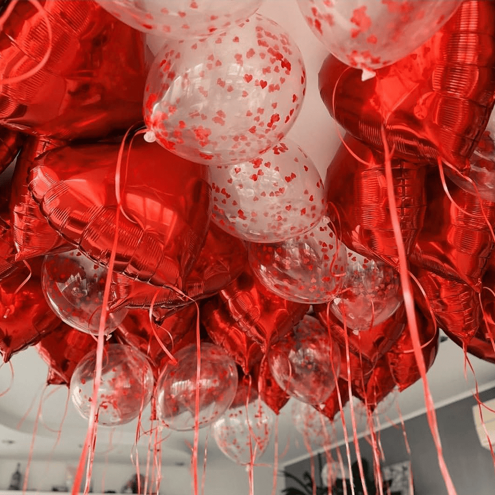Зануртеся в атмосферу романтики з цими чарівними червоними та прозорими кульками, прикрашеними дрібними сердечками. Кожна кулька — це символ любові і святкового настрою, що заповнює простір радістю та теплом. Ідеальне доповнення до вашого свята, яке створить незабутню атмосферу любові та гармонії.