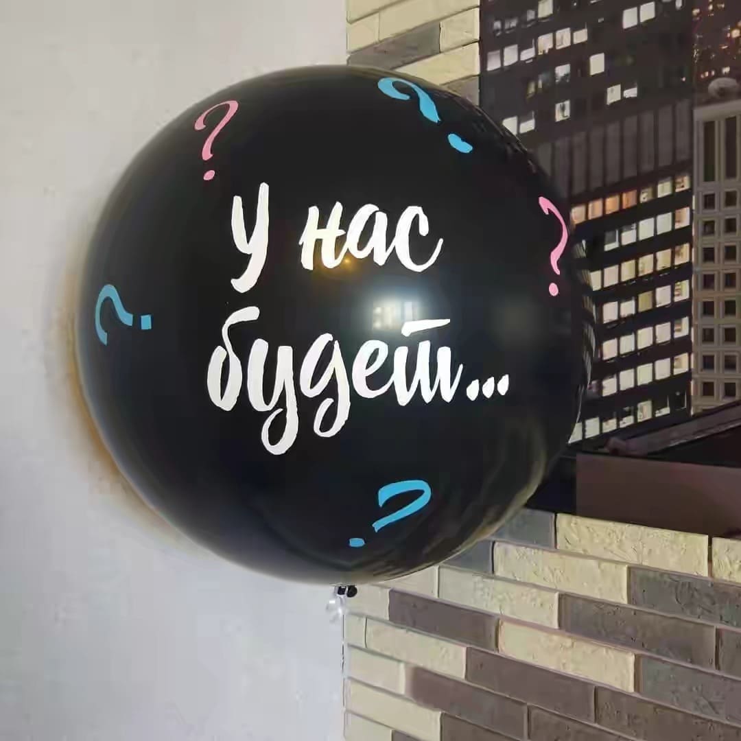 Велика чорна куля з написом “У нас буде…” тримає в собі неймовірну інтригу. Питальні знаки неначе запрошують до захопливого відгадування таємниці. Її розкриття стане початком нової життєвої пригоди, сповненої радості та любові.