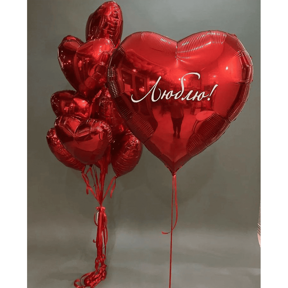 Ця стильна композиція з червоних куль зачаровує своєю емоційністю. Найбільша куля з індивідуальним написом яскраво виблискує, відображаючи світло і підкреслюючи почуття, закладене в кожному символі. Вона оточена меншими кулями, які створюють гармонійний ансамбль, що символізує теплоту і пристрасність кохання. Ідеальне оформлення для вираження найглибших почуттів у святковій атмосфері.