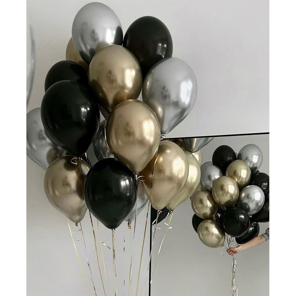 Ця витончена композиція в чорних, срібних і золотих тонах створює вишуканий настрій для будь-якого свята. Додайте чарівності вашому заходу з цими кульками, які підкреслять стиль і класичну красу моменту.