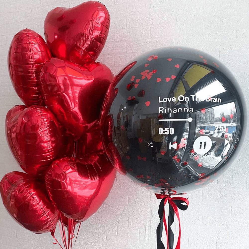 Цей чарівний набір кульок наповнений романтичною енергією кохання. Червоні серця символізують палкі почуття, а велика куля з музичною темою створює атмосферу, де кожна мелодія стає символом ніжності і пристрасті. Це ідеальний вибір для святкування особливих моментів, коли хочеться додати нотку музики та чарівності в атмосферу. Позвольте вашим почуттям звучати з цим прекрасним набором.