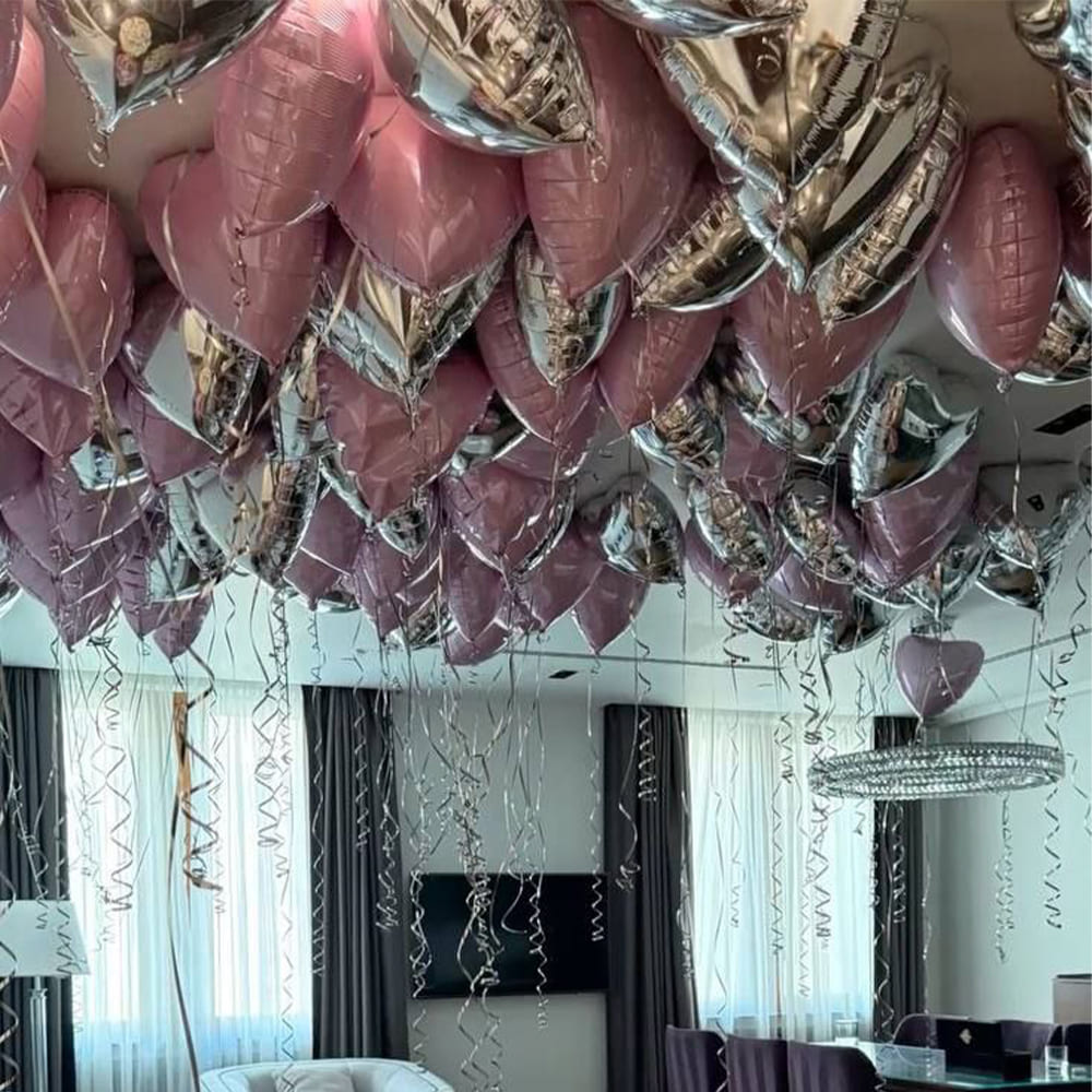 Зануртеся у чарівний всесвіт, де кожна куля — це зірка, що зійшла з неба, щоб зробити ваше свято незабутнім. Величезне скупчення сріблястих і рожевих куль створює ефект небесного дощу, який ніби застиг у просторі, відбиваючи світло яскравими виблисками. Ці срібні й рожеві серця не просто символи свята, а й уособлення радості та щастя, які огортають вас з усіх боків. Витончені срібні стрічки, що спадають униз, додають легкості й витонченості композиції, перетворюючи простір на казковий світ, сповнений мрій і надій. Дизайн ідеально підходить для урочистих подій, надаючи інтер’єру атмосферу розкішної вечірки або романтичного свята. “Рожевий Зорепад” — це не просто декорація, це магія, яка переносить вас у світ досконалості і краси, де кожна мить — це свято життя та любові.