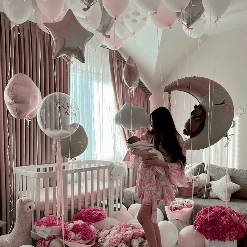 Створіть для вашого малюка затишний казковий світ з повітряними кульками в пастельних відтінках. Зірки, хмарки та місяць наповнюють кімнату атмосферою спокою і любові. Це ідеальна декорація для перших днів життя, де кожна деталь говорить про тепло й ласку. Подаруйте вашій дитині найкращі миті в чарівному світі ніжності!