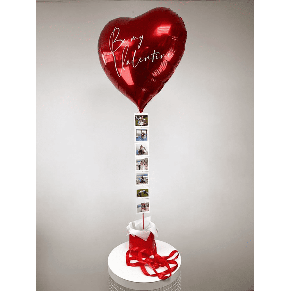 Червоне серце з ніжним написом Be my Valentine підіймає за собою стрічку з найціннішими моментами вашої історії — живими спогадами, наповненими любов’ю, теплом і щирими емоціями.