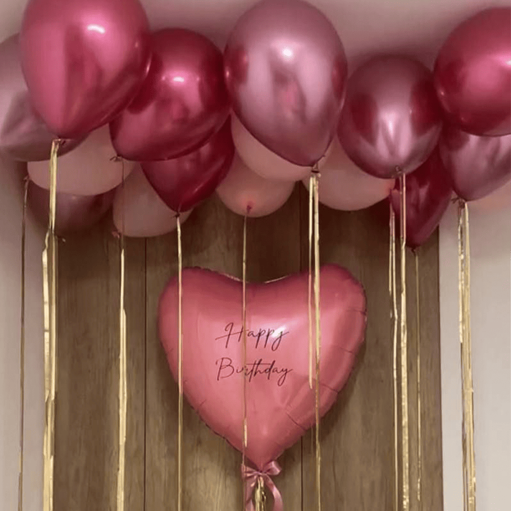 Ця чарівна композиція з ніжно-рожевих кульок та серця з побажанням дарує атмосферу тепла і радості. Ідеально підходить для святкування дня народження, додаючи ніжності та любові в кожну мить. Створіть незабутню атмосферу з цим чарівним декором.