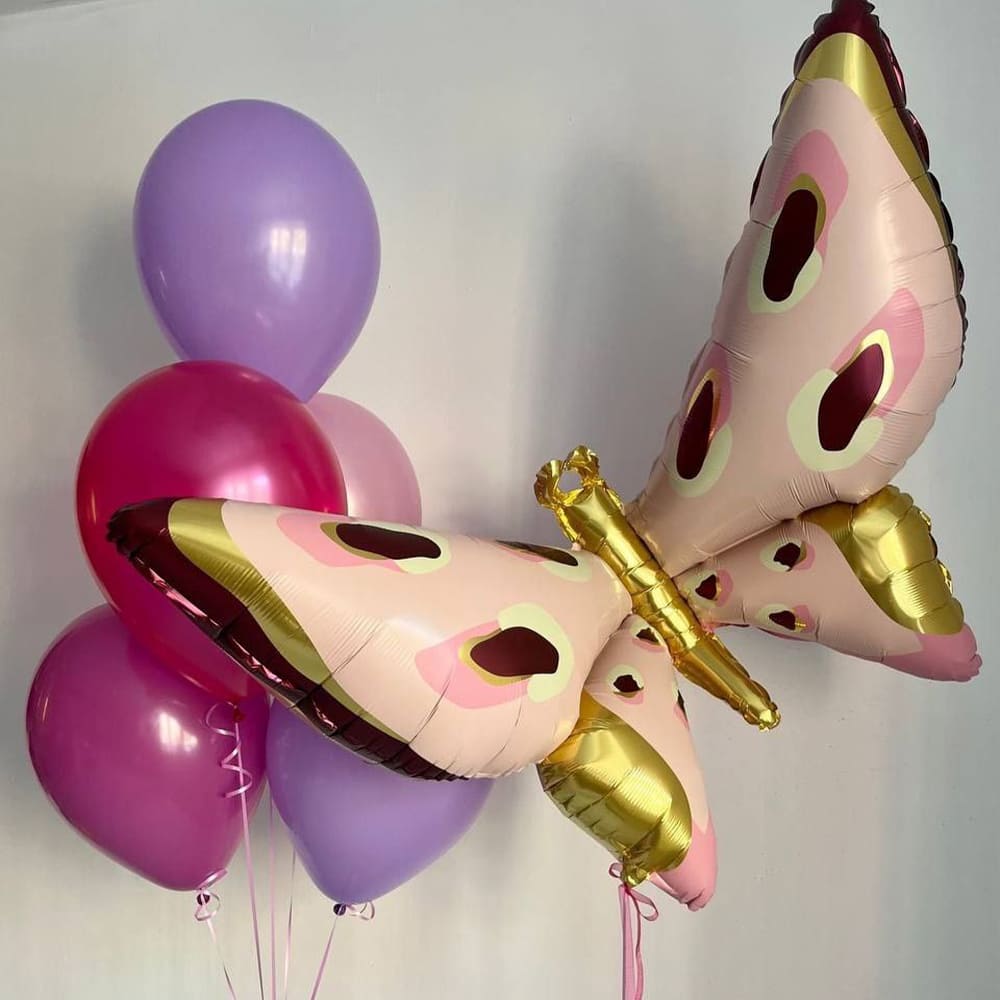 Зачаруємо світ ніжністю і казковістю з яскравим метеликом серед різнобарвних кульок. Ця композиція символізує легкість та красу мрій, створюючи атмосферу чарівного свята. Ідеально для подій, що сповнені натхнення та радості.