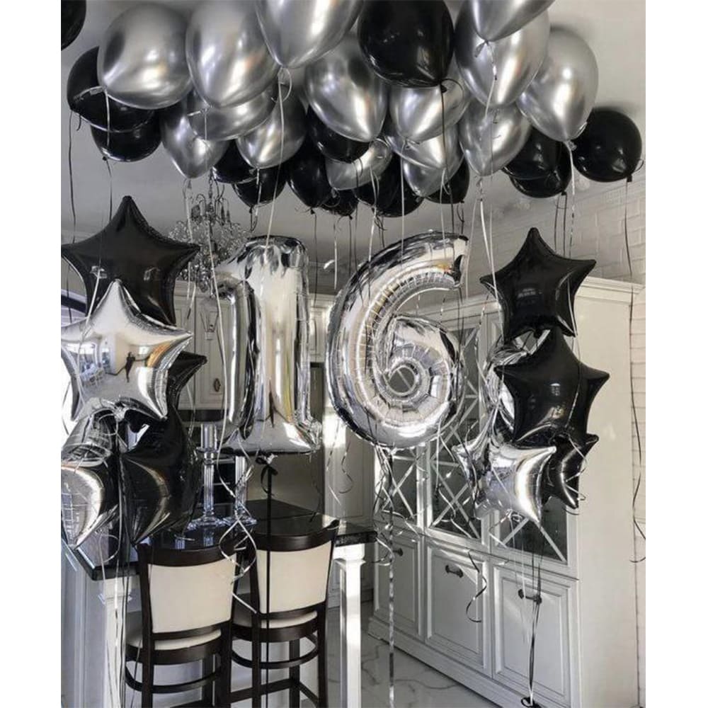 Черные и серебристые шары, украшенные нежными пожеланиями, создают изысканную и стильную атмосферу праздника. Эта композиция отмечает значимость момента и несет в себе тепло и любовь. Идеальное решение для тех, кто ценит красивые и современные акценты, даря незабываемые впечатления в особый день.