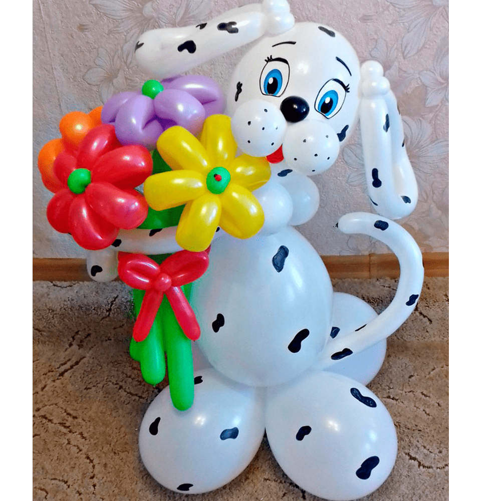Легкая и стильная воздушная композиция с фигуркой далматинца и нежными цветами создает атмосферу радости, энергии и утонченного шарма. Цветы гармонично дополняют образ, добавляя композиции легкости, свежести и праздничного настроения. Это яркий декор, который наполняет пространство теплом, движением и искренними эмоциями. 🐶🌸