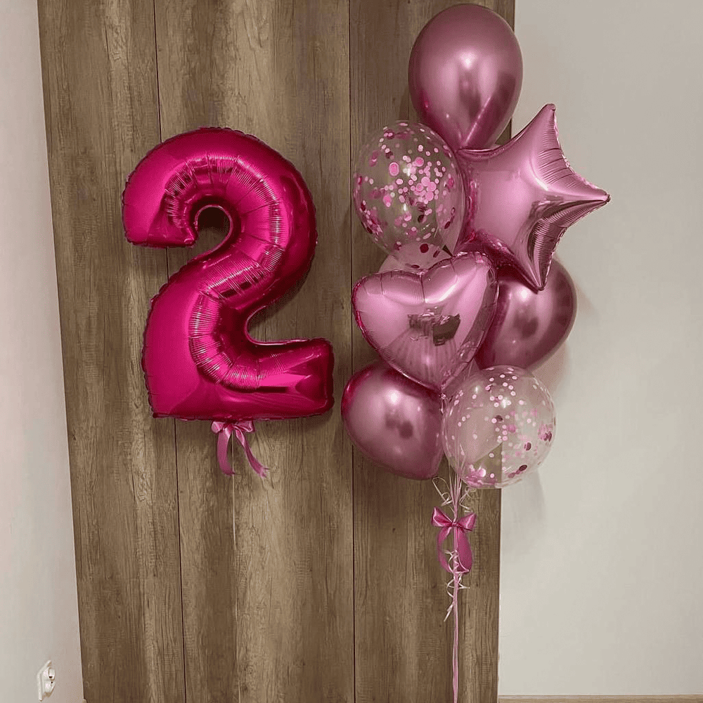 Эта изящная композиция в нежно-розовых тонах с яркими деталями создает волшебную атмосферу для праздничного события. Крупные цифры, звезды и сердца добавляют радостного настроения, делая этот день по-настоящему особенным. Идеально подходит для самых маленьких, чтобы окружить их сказочным волшебством и радостью.