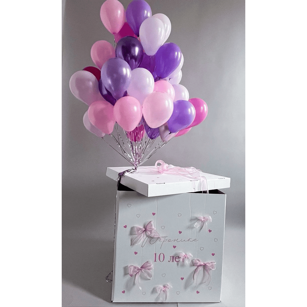 Эта изысканная композиция из воздушных шариков в нежно-розовых и пурпурных оттенках излучает очарование и радость. Большая праздничная коробка с милыми бантами и деталями добавляет особого шарма, делая день незабываемым. Идеальный выбор для празднования, наполняющий атмосферу теплом и магией.