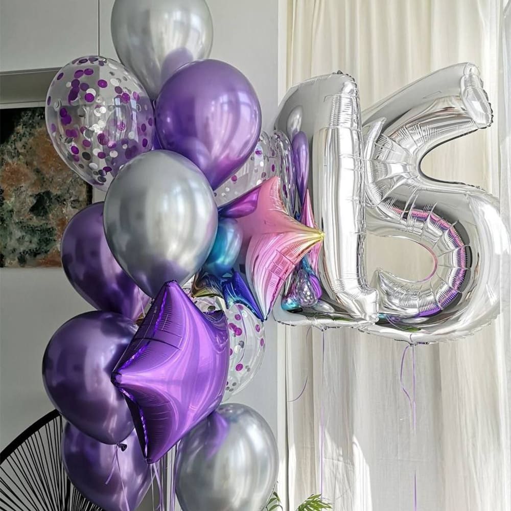Устройте настоящий праздник с набором «Звездная симфония». Фиолетовые, серебристые и красочные акценты создают атмосферу, которая завораживает и дарит незабываемые эмоции. Этот набор станет идеальным выбором для юбилея или дня рождения, добавляя в фестиваль нотки роскоши и радости. С «Звездной симфонией» каждый момент станет особенным