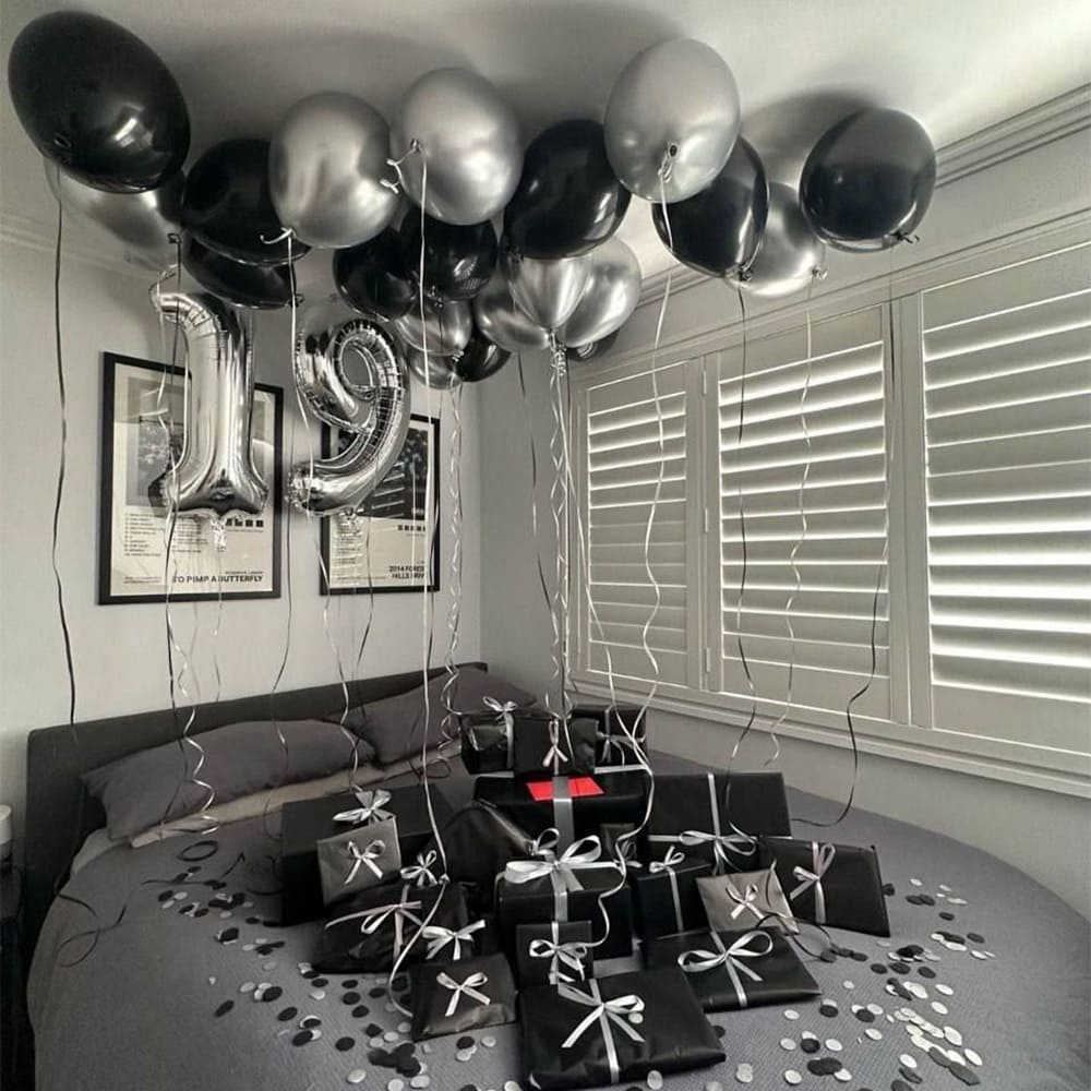 Добавьте стиля и блеска к вашему празднику с набором «Серебристый Шарм». Сочетание черных и серебристых шариков создает элегантную атмосферу, идеально подчеркивая ваш утонченный вкус. Большие серебристые цифры с акцентом на важной дате сделают вечер памятным. Идеально подходит для вечеринок, юбилеев и тематических мероприятий. Заказывайте «Серебристый Шарм» и пусть ваши моменты сияют!