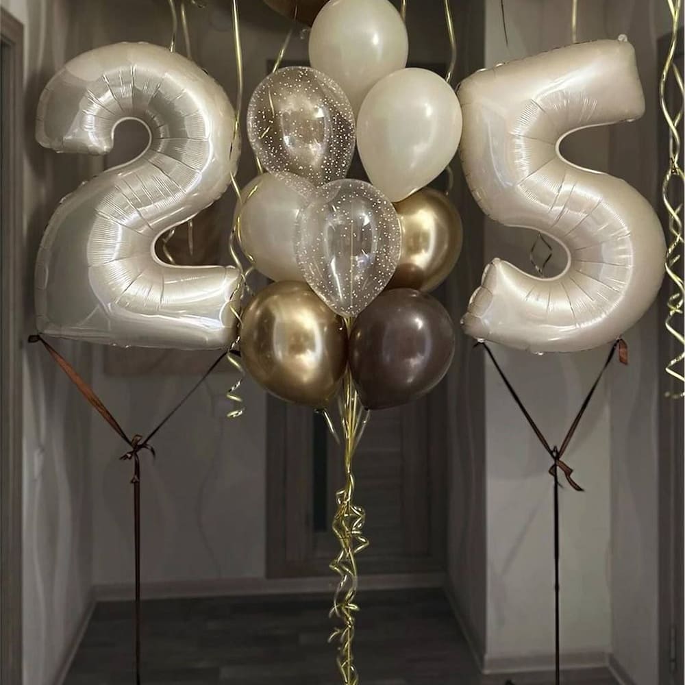 Отметьте знаменательное событие стильно с набором. Изысканные золотистые и серебристые шарики, дополненные блестящими цифрами, создадут атмосферу роскоши и торжественности. Идеально подходит для юбилеев и важных вех жизни. Заказывайте и превратите ваш праздник в незабываемый шедевр!