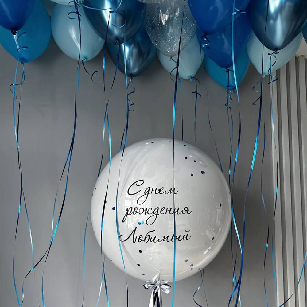 Создайте атмосферу нежности и радости для вашего любимого с изысканной композицией в сине-белых тонах. Эти шарики подарят праздник, который наполнит день рождения особым теплом и любовью.