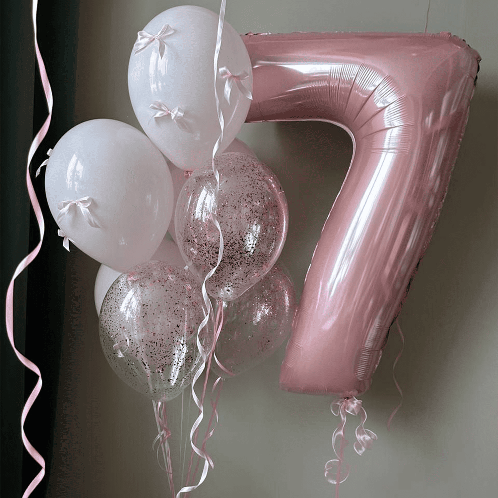 Набор шариков в нежных розовых и белых тонах создает атмосферу сказки и сияния в честь дня рождения. Изящная цифра подчеркивает важность этого особого возраста. Розовые акценты и блестки добавляют шарма и очарования. Идеальное оформление для празднования, которое оставит незабываемые впечатления и счастливые воспоминания!