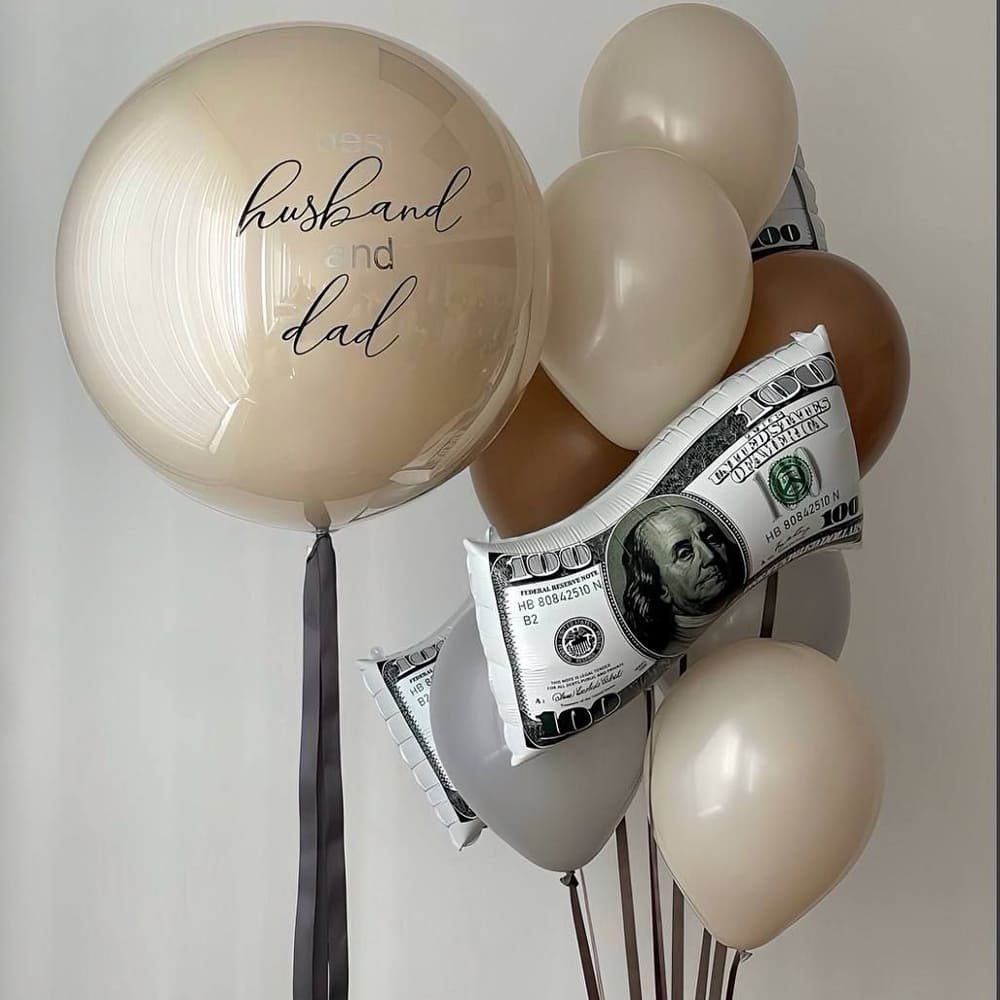 Отметьте особый день с набором шаров, подчеркивающим значимость и ценность вашего любимого мужа и отца. Элегантность бежевых и коричневых оттенков шариков создает изысканную и стильную атмосферу, которая подходит для празднования в семейном кругу. Особой изюминкой становятся шарики в форме стодолларовых купюр, как символ стабильности и успеха, приглашая на веселый и креативный способ поздравить мужа / папу по случаю его дня. Выразите свою любовь и благодарность оригинальным способом, подарив ему волшебный момент, который запомнится на долгие годы. С «Волшебным Сюрпризом для Настоящего Главы» каждое празднование станет не просто событием, а проявлением любви и уважения!