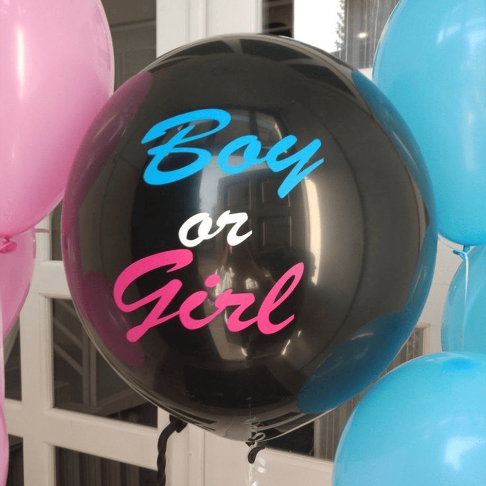 Черный шар с надписью «Boy or Girl» держит в себе загадку, которая скоро будет раскрыта. Нежные оттенки розового и голубого рядом усиливают ощущение предвкушения. Это особый момент, когда секрет становится сюрпризом, а ожидание превращается в счастье.